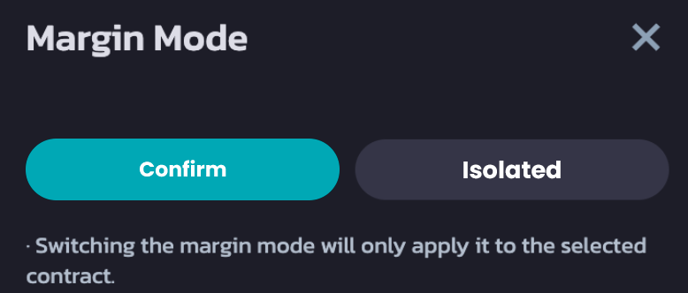 * Isolated Margin Mode: The position in the Isolated Margin mode is independent for each trading pair. They won’t affect each other’s margin ratio.